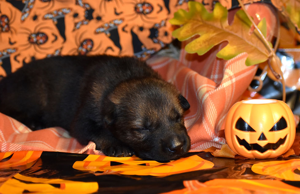 Anarch is a 100% DDR gorgeous black male. Sansa is a female out of our F litter carrying half DDR genes from her sire's bloodline and half West German/Czech genes from her dam's side of the family.